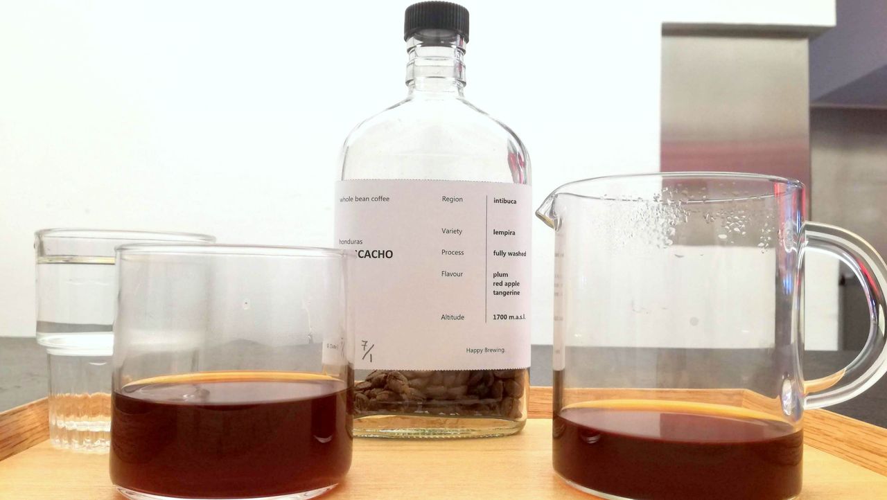 やって来たのは例のごとくのスタイル。そして気を利かせて豆が入ったボトルも持ってきてくれた。
