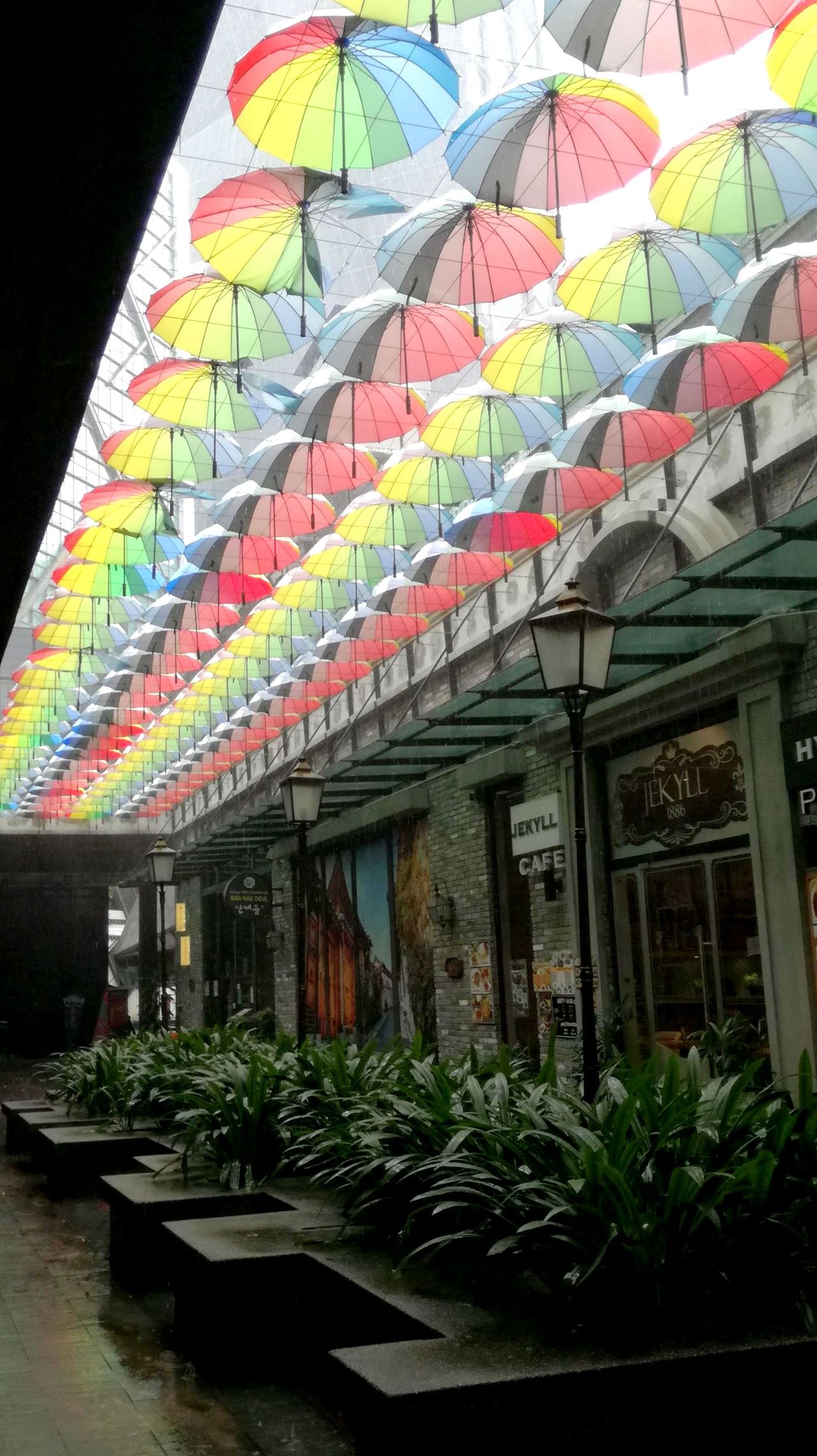 この小さなモール、ちょっとおしゃれな感じで雰囲気良いんだけど、雨が降ると大変。。。傘が全然役に立ってねぇ。