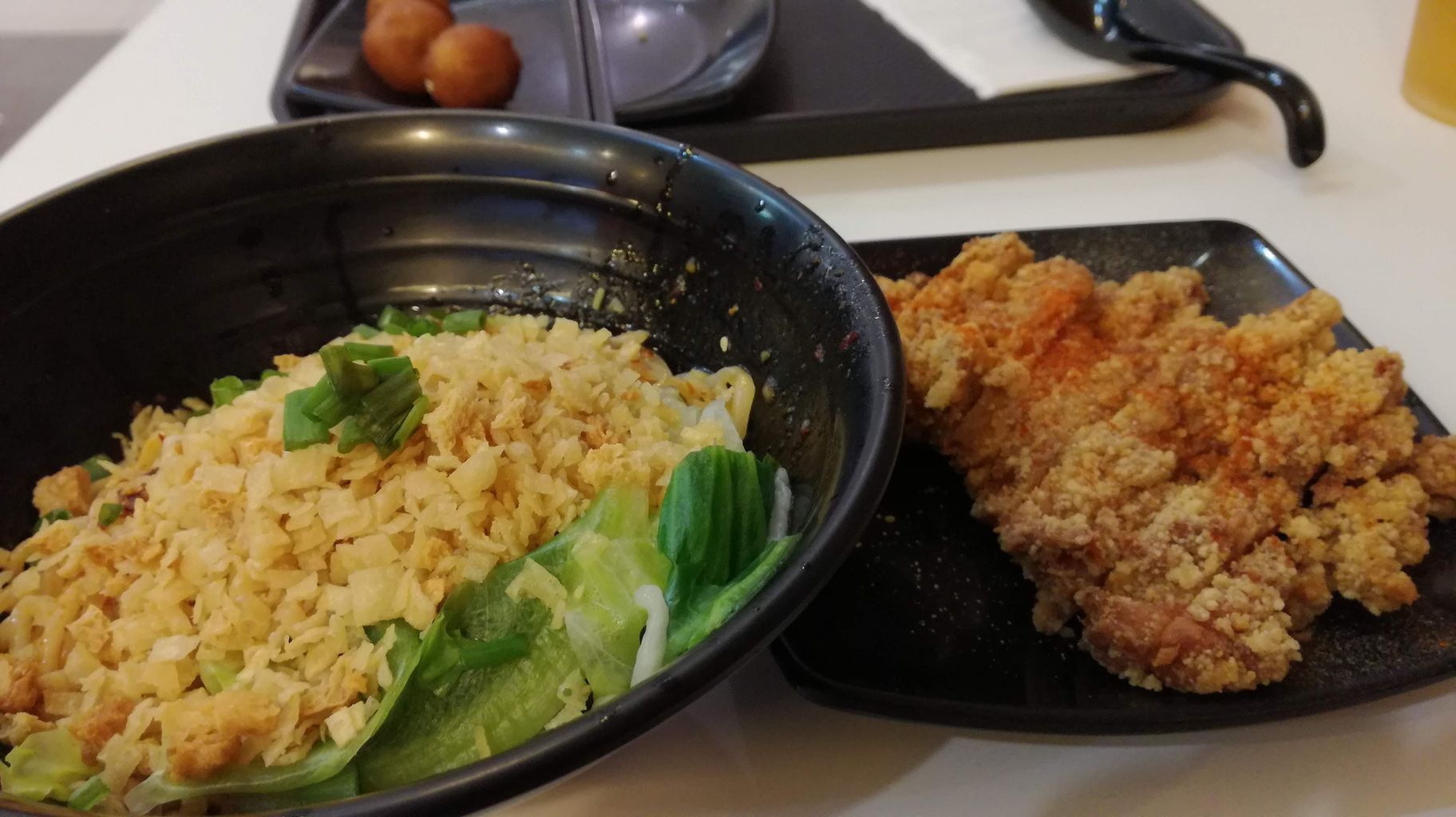 ヌードルは日本でいう天かすの量が、隣にフライドチキンもあるのにどうしてくれるんだというぐらいの、なかなかチャレンジングな量。味自体は普通に美味しいけど結構ジャンキーな味付け。
