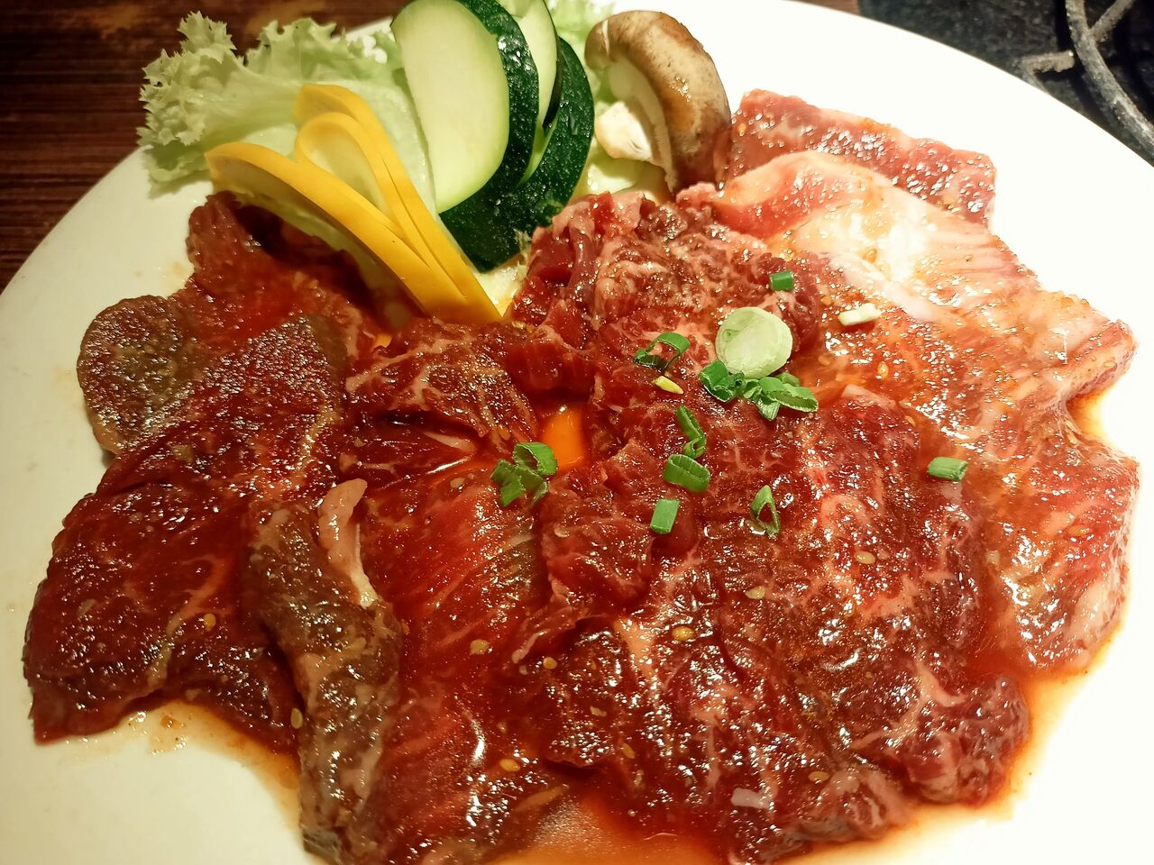 前回来たときはたしかハンバーグを食べたので今回はご飯、お味噌汁、キムチ、サンチュ、デザートがついてくる焼肉の上セットを注文した。